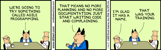 Agile, agile, agile, that’s all I hear.  Ridiculous. When did not being a robot blindly following a set of rules become so unusual?  Seriously, applying critical thought to your work everyday, should not be the exceptional bar it should be the min bar.  If you don’t ask yourself everyday what is and is not working and then fixing what needs fixing, you cannot call yourself an engineer.