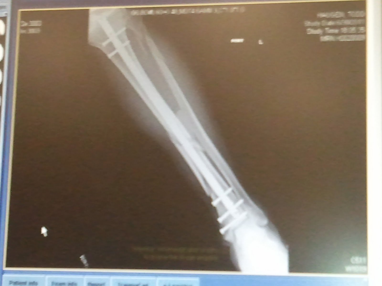 – He stuck the first film on the light box and said, “ahh, your rod is moving around, see this windshield wiper like effect? That means you have a non-union, your leg is not healed and given it has been over a year that is going to cause to complications trying to repair it.”